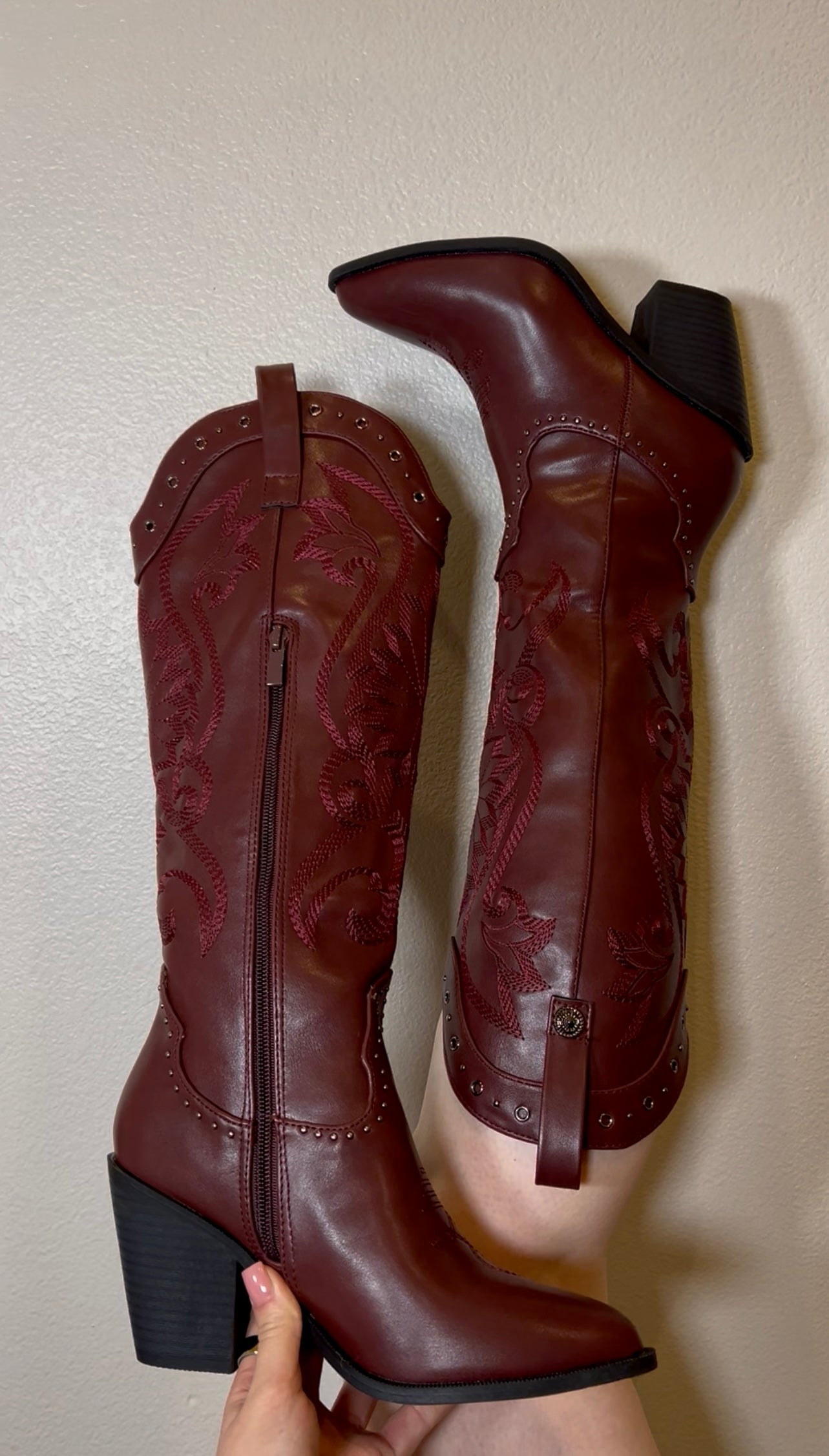 Kristen Knee High Heel Boot - Wine
