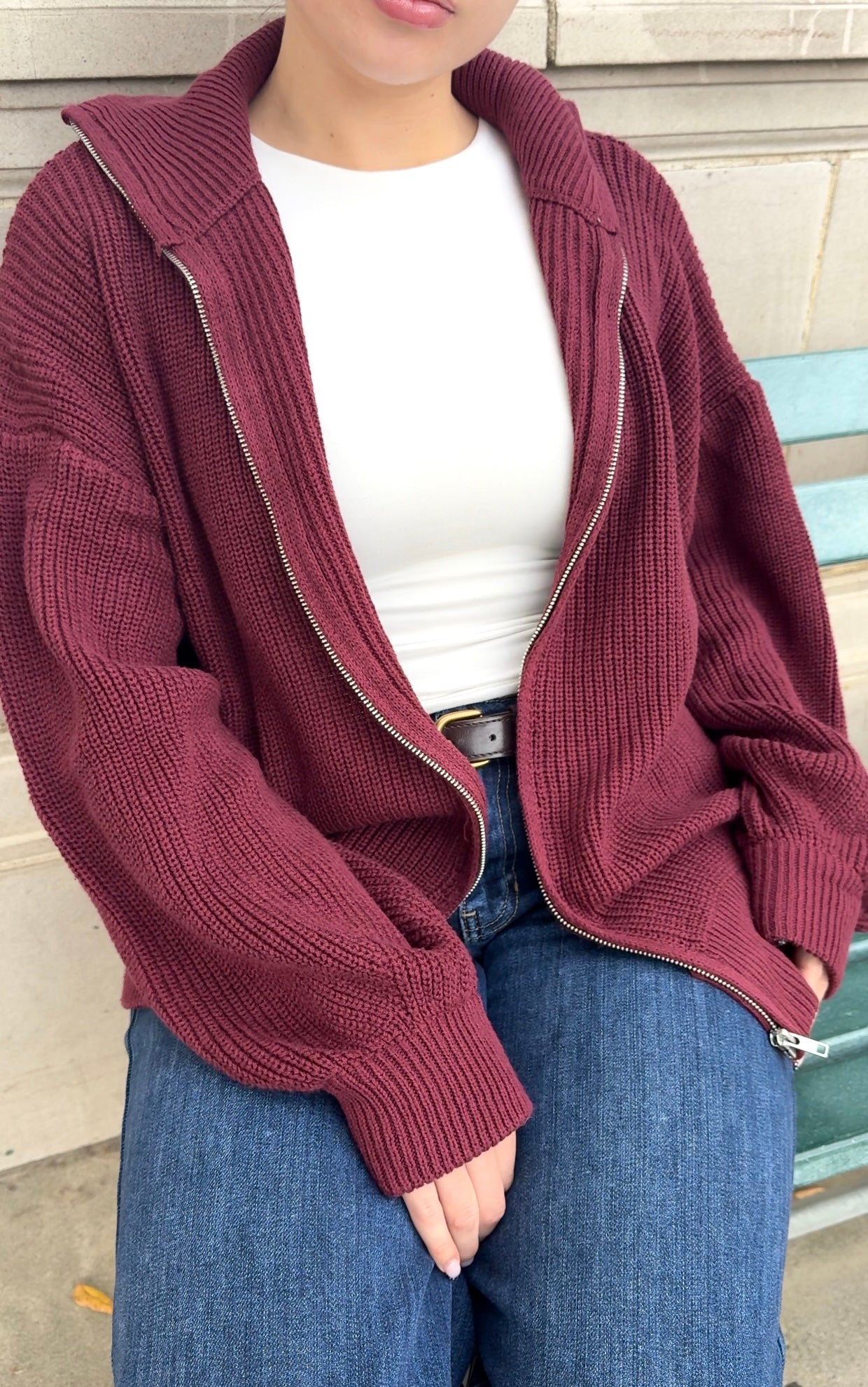 Cozy Mornings Knit Oversized Sweater - Burgundy