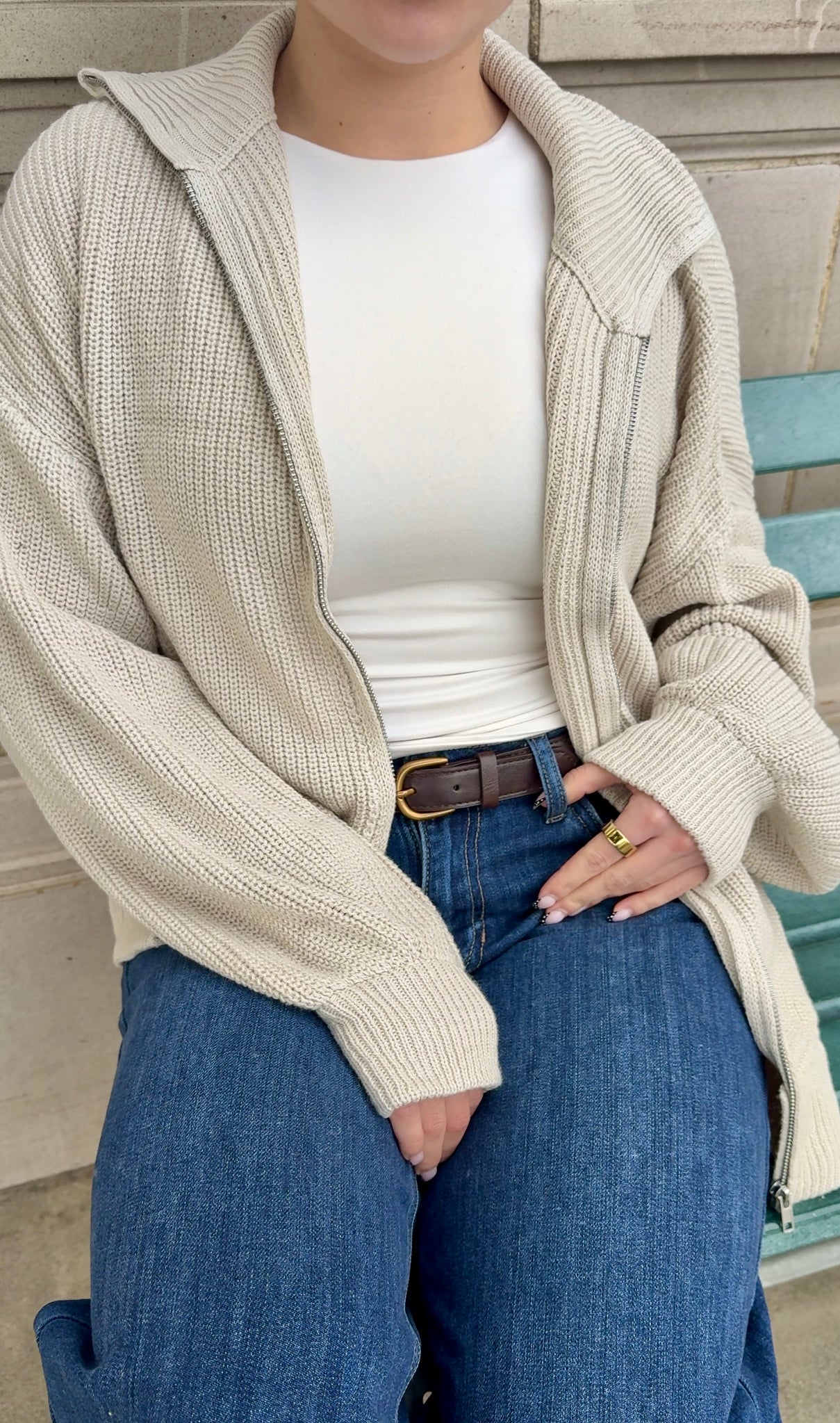 Cozy Mornings Oversized Knit Sweater - Taupe