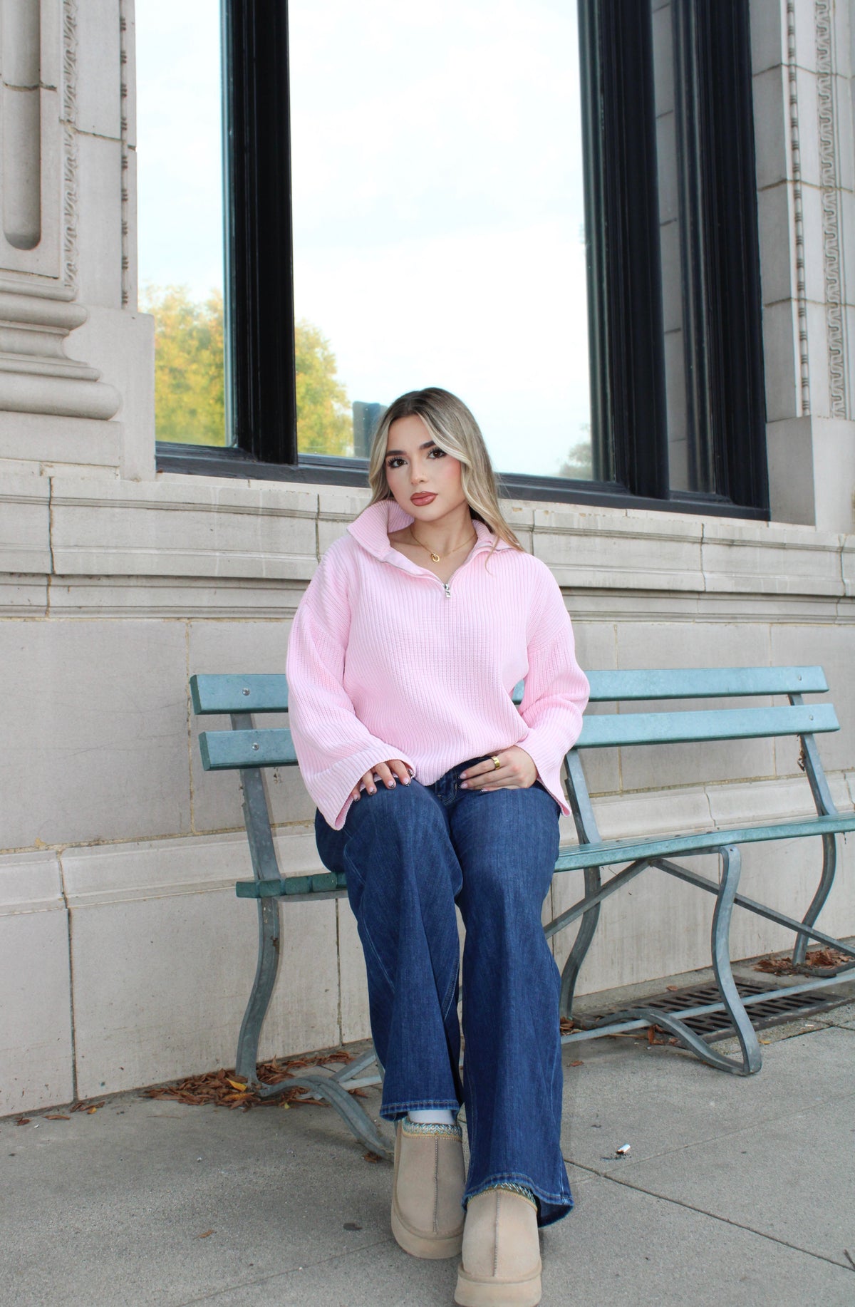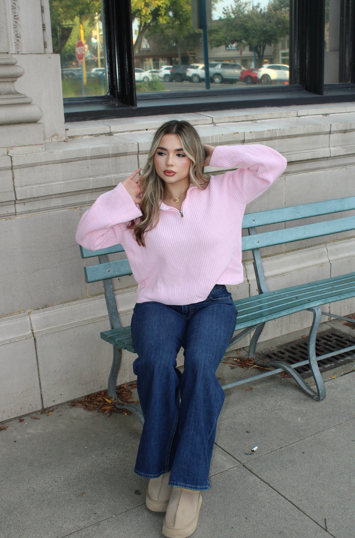 Lisa Sweater Knit Half Zip Top - Soft Pink