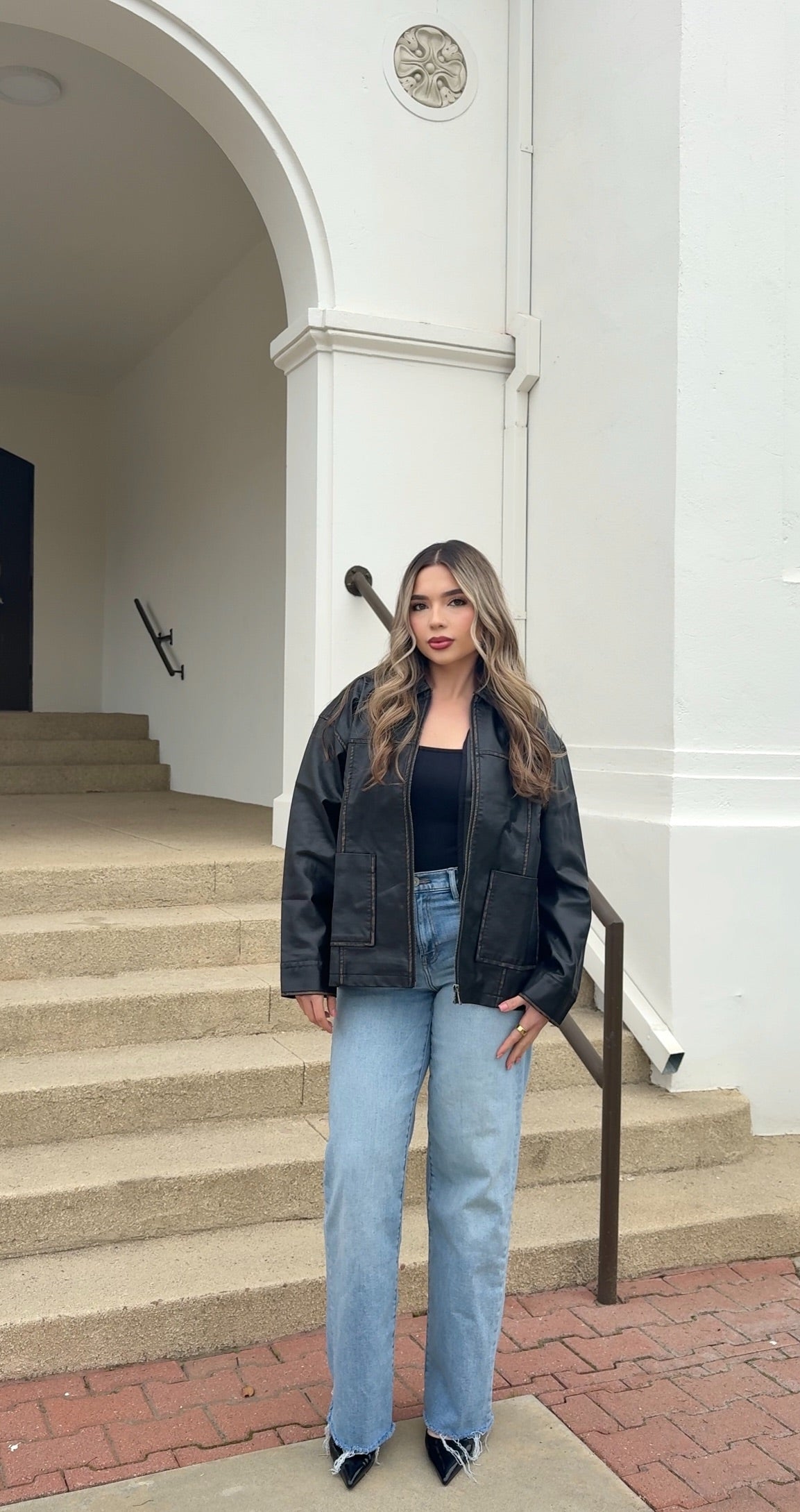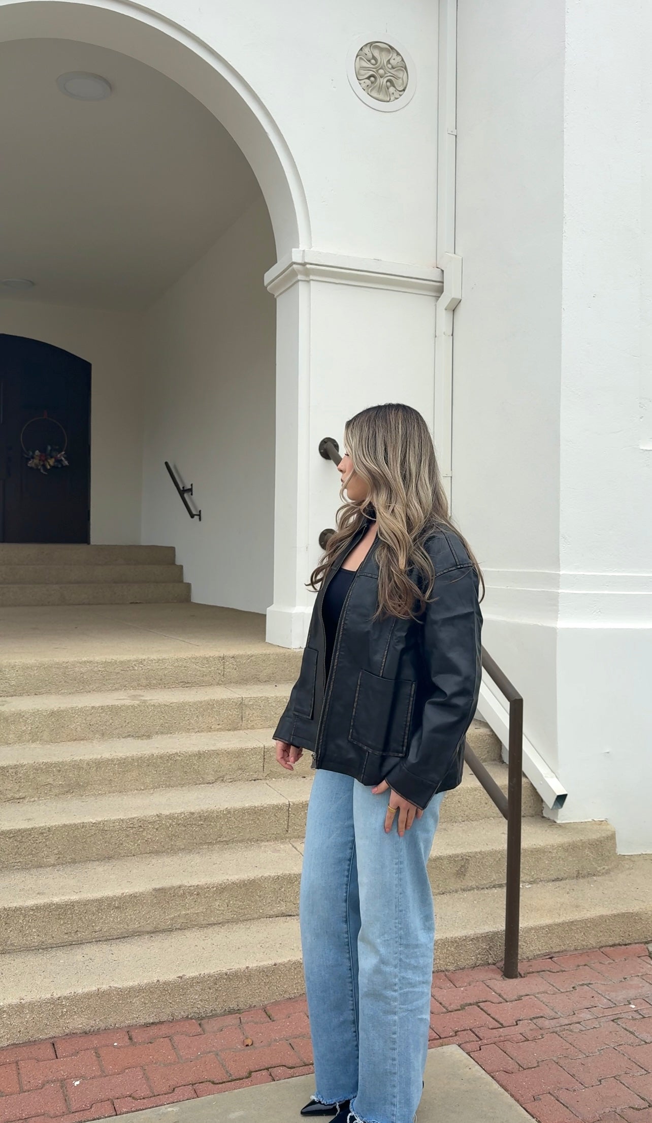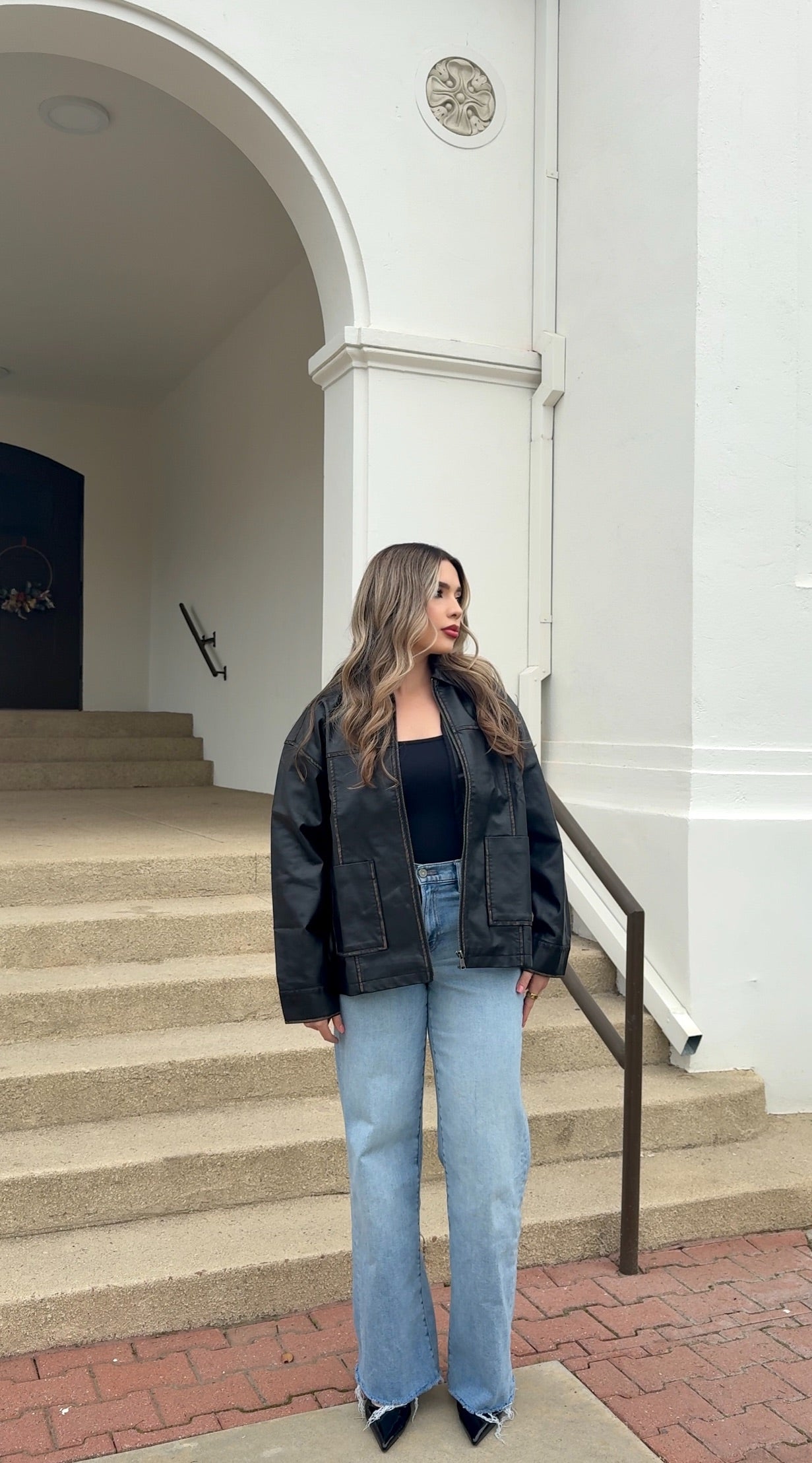 - Washed faux leather