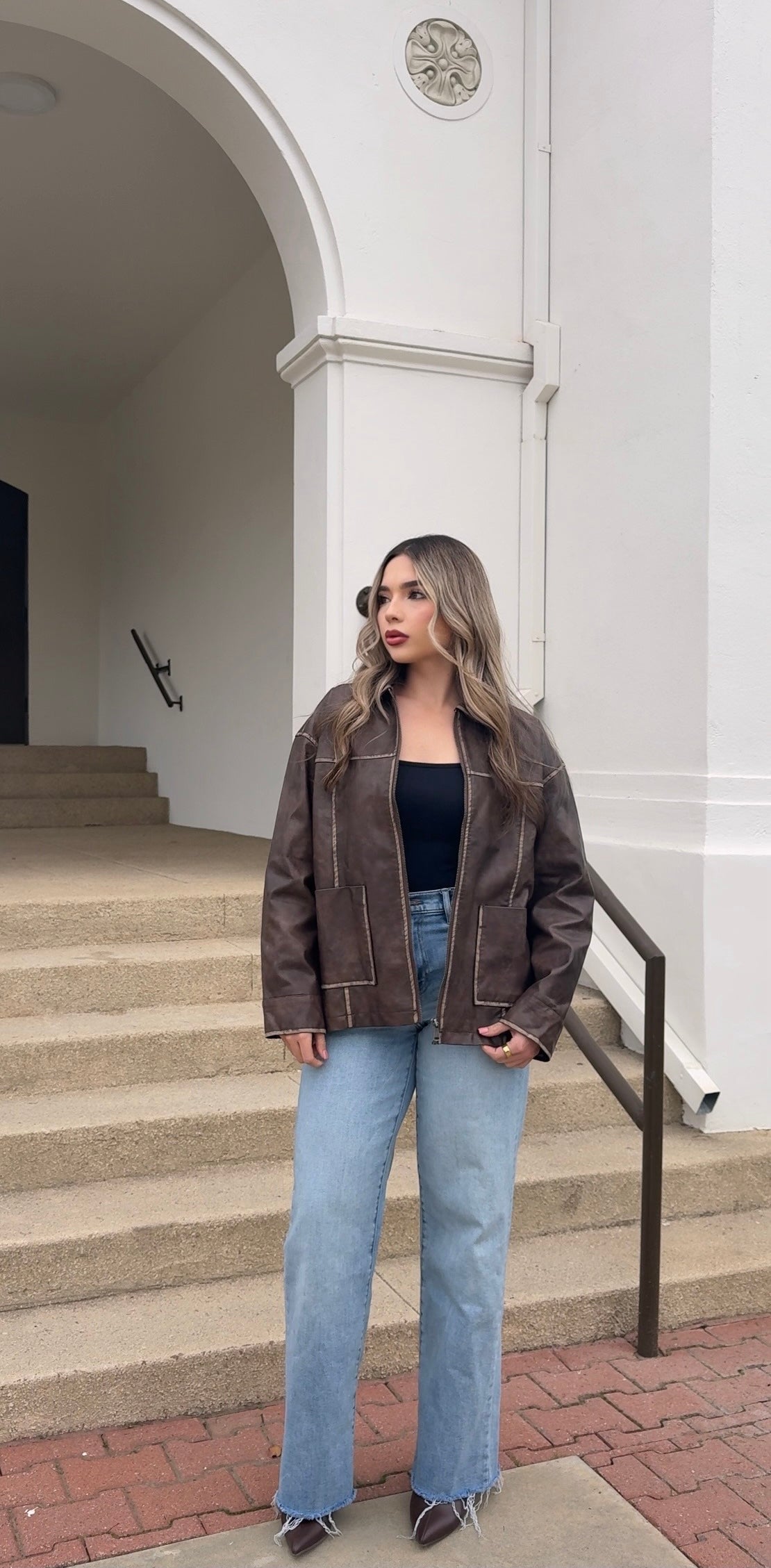 Vintage Leather Zip Up Jacket - Brown